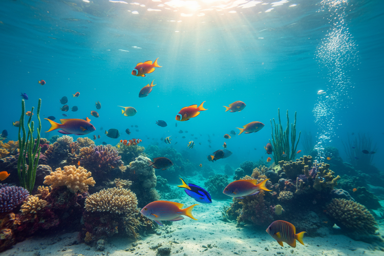 Aquarium décor, artificial plants, caves, and natural-style ornaments designed to create a comfortable and attractive underwater environment.